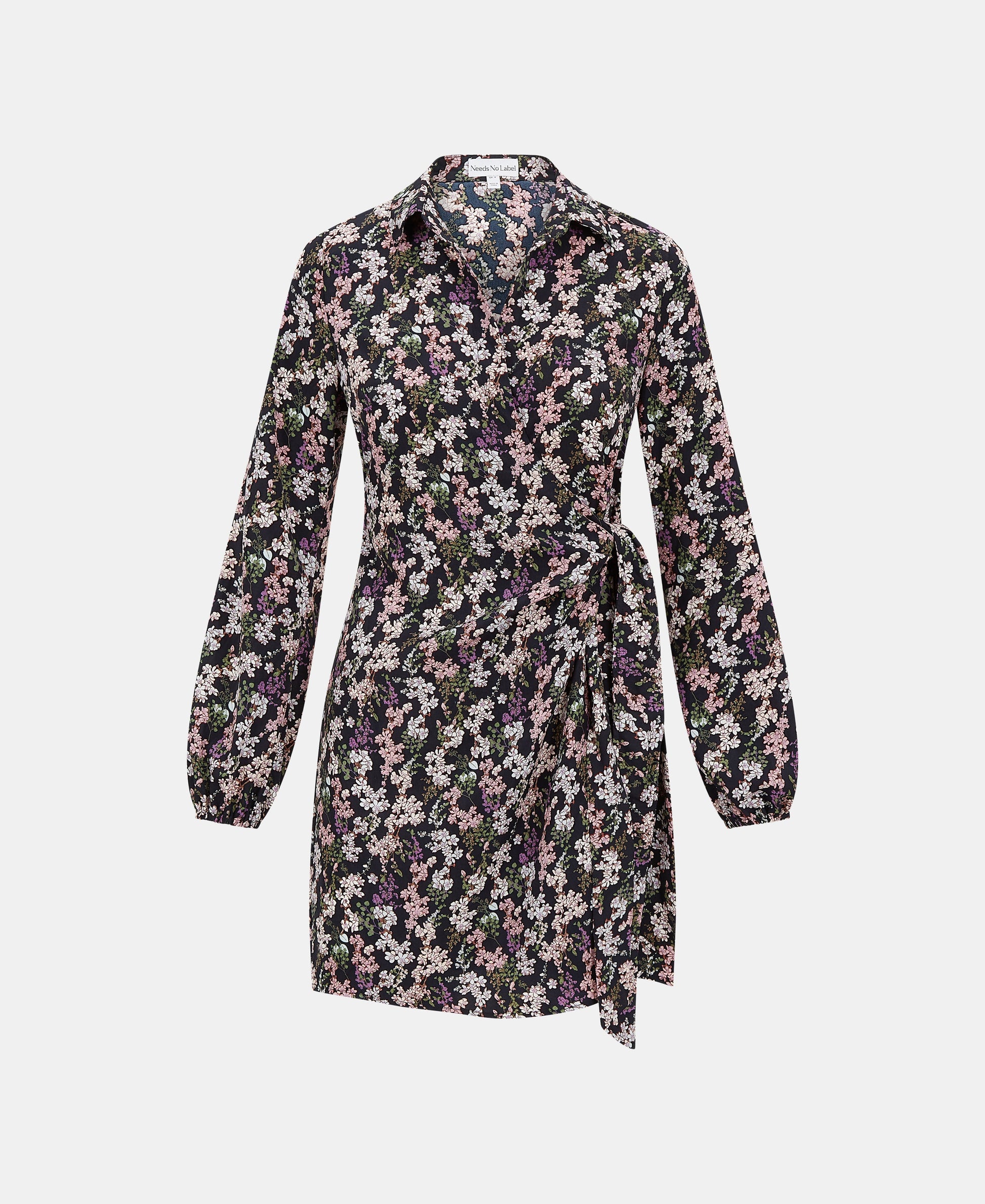 Collar and button detail on bust leading to a tie waist and wrap skirt
