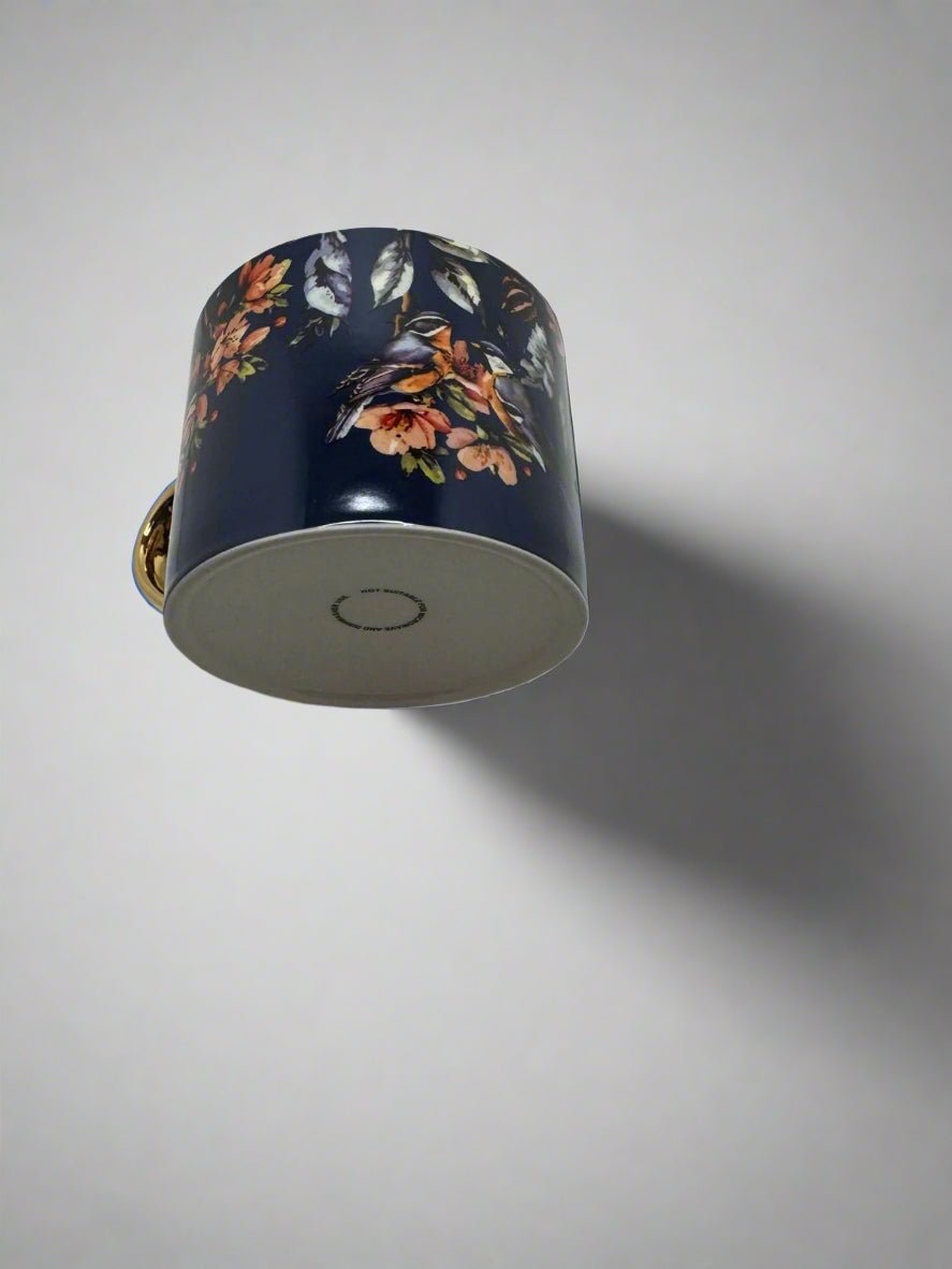 Straight Sided Mug with Gold Handle - Garden Blooms Blue